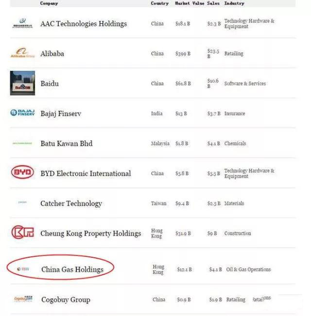 2017年8月24日,《福布斯》 新發(fā)布了2017年亞洲 佳50家上市公司榜單,中國燃氣憑借出色業(yè)績表現(xiàn)及公司經(jīng)營管理等綜合情況, 三次榮登該榜單,名列 9位。