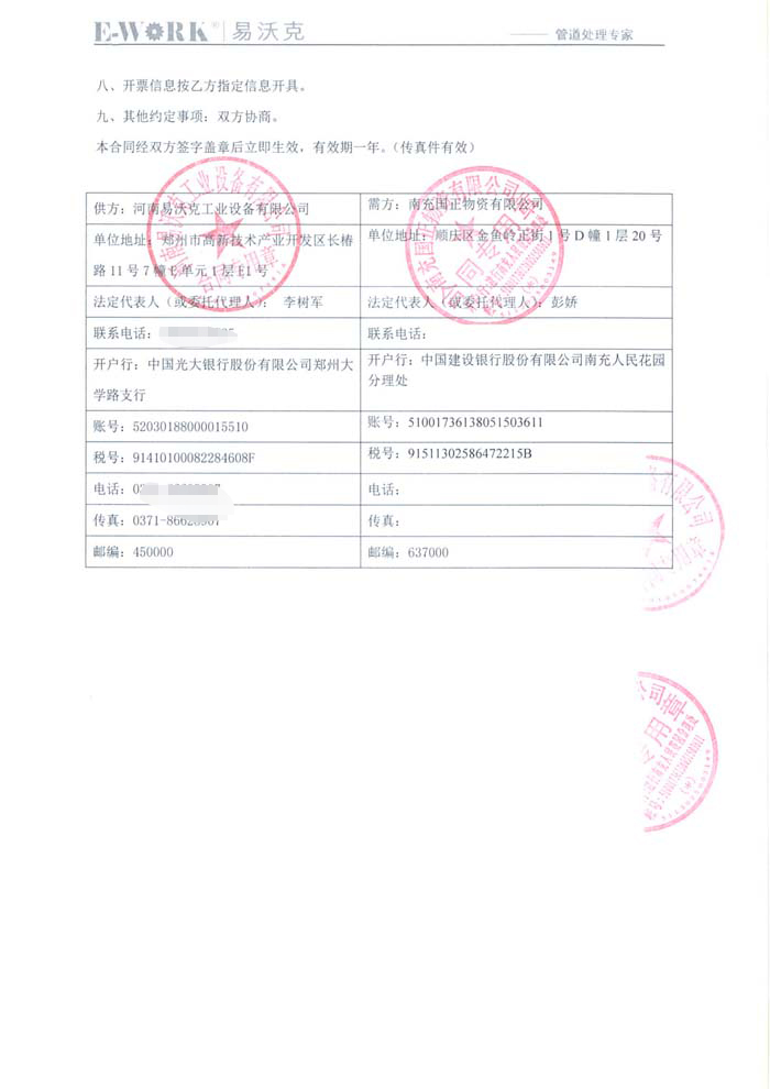 2016年南充國(guó)正物資有限公司合作業(yè)績(jī)