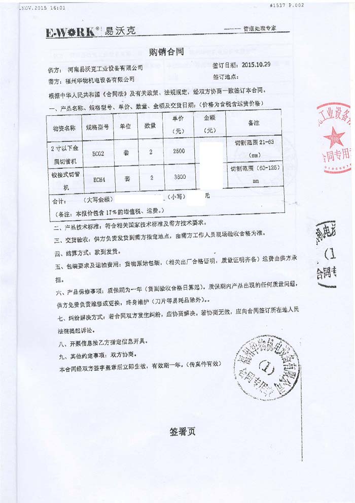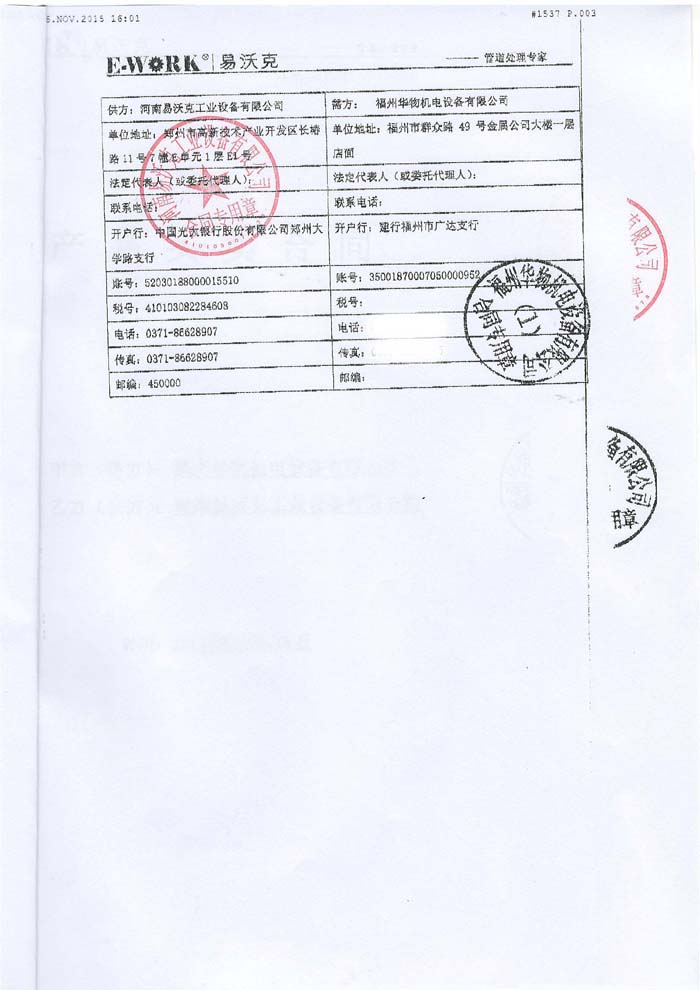 2015年福建福州華物機(jī)電設(shè)備有限公司合作業(yè)績(jī)