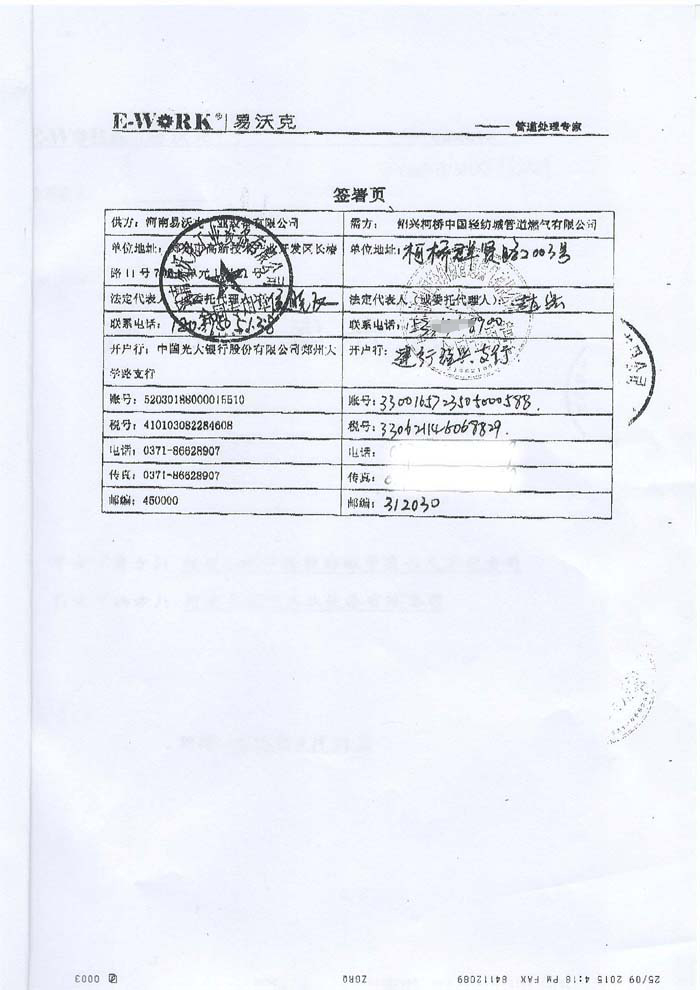 2015年浙江紹興柯橋中國輕紡城管道燃?xì)庥邢薰竞献鳂I(yè)績